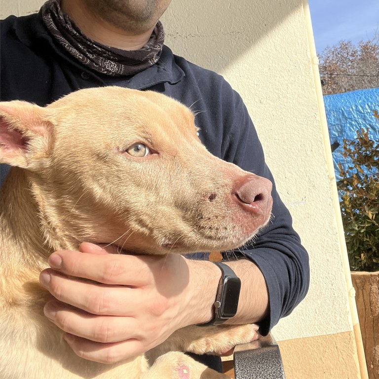 Va entrar el 2023 al centre i mai s’ha acabat d’adaptar. És un gos actiu i ple d’energia, uns trets que, sumats al seu passat, han provocat que pateixi un estrès desmesurat.
